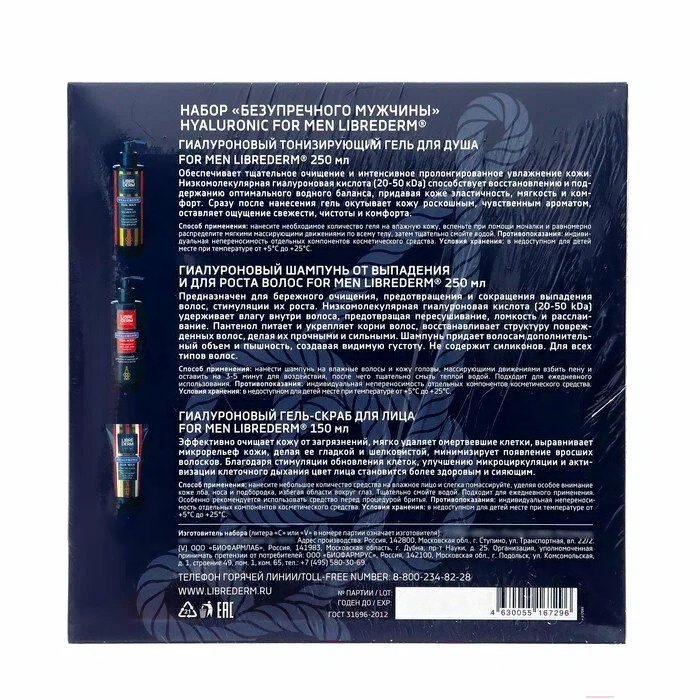 Набор косметики для лица и тела Librederm For Men крем для лица Коллаген ночной+гель для душа (50мл+250мл)