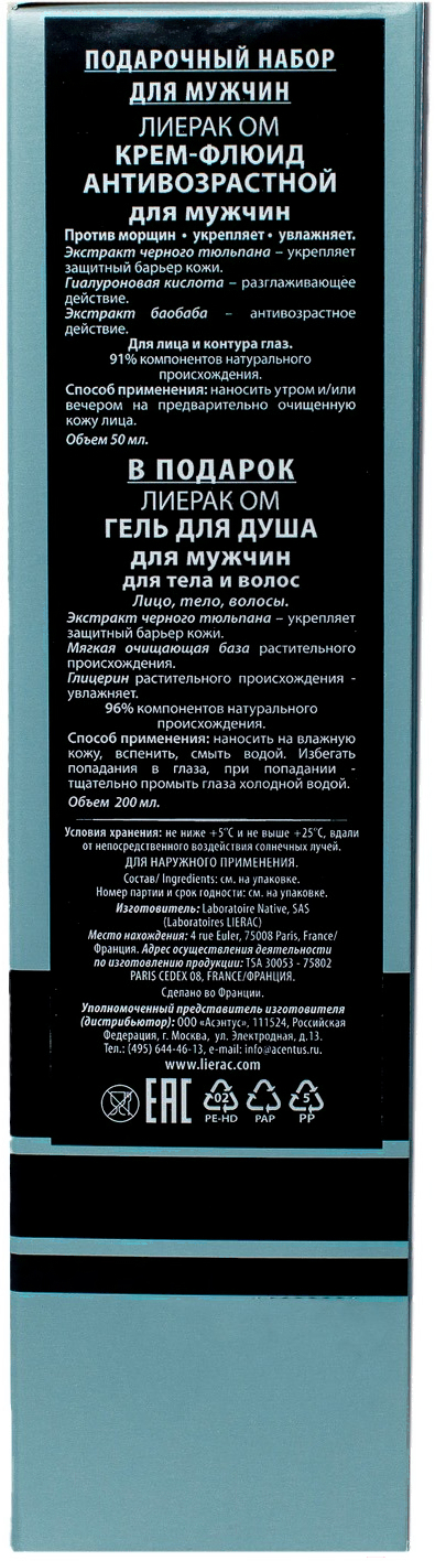 Набор косметики для лица и тела Lierac Homme Крем 50мл+Гель для душа 200мл
