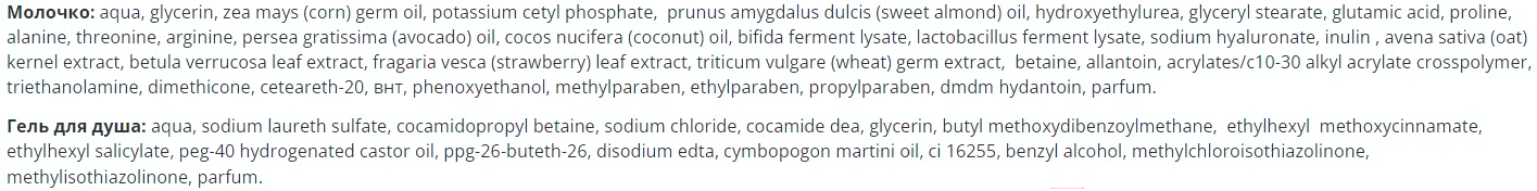 - Активные ингредиенты масло кокоса, масло авокадо, экстракт клубники
