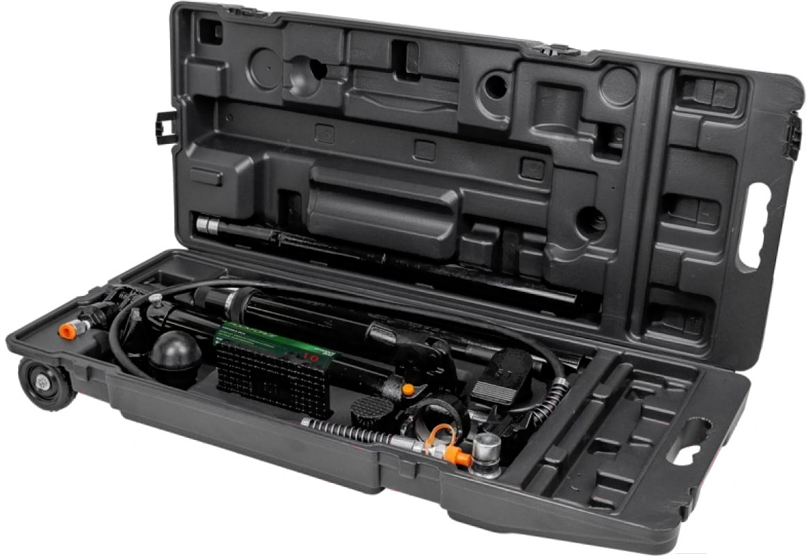- В комплекте кейс, цилиндр, удлинитель, гидроцилиндр, шланг, ЗИП