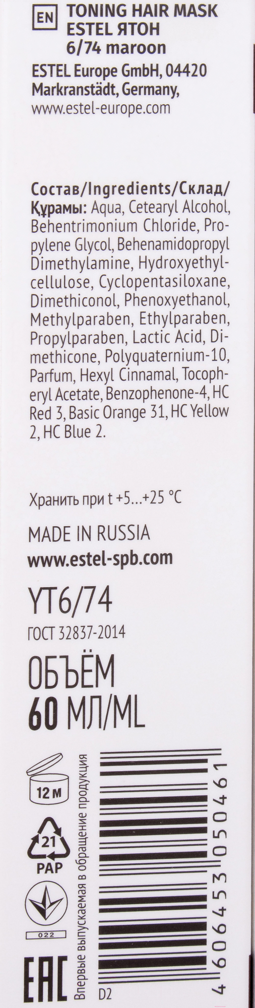 Тонирующая маска для волос Estel Я Тон 6/74 (60мл, каштановый)
