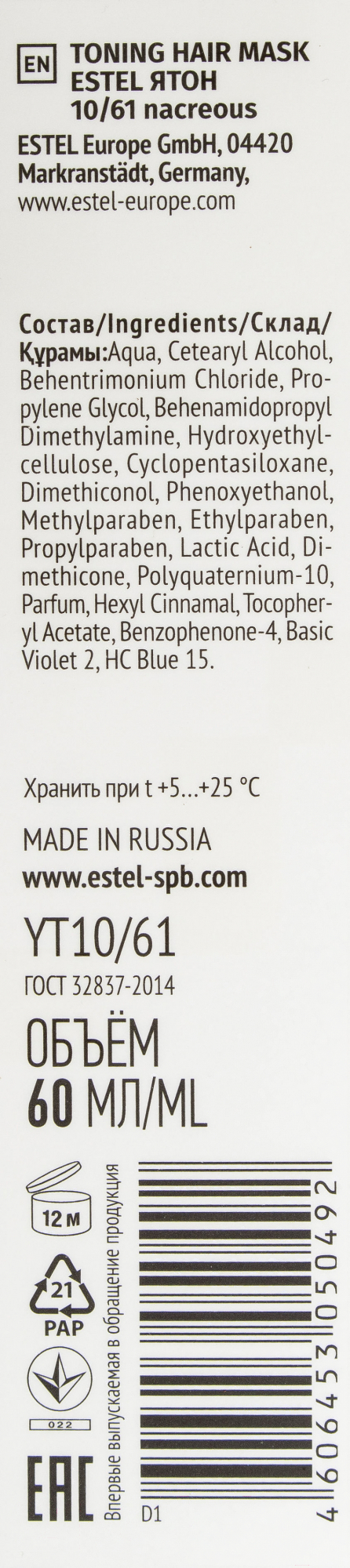 Тонирующая маска для волос Estel Я Тон 10/61 (60мл, перламутровый)