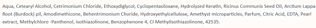 - Действие увлажнение, тонирование, облегчает расчесывание, придание блеска/сияния, придание упругости, придание эластичности
