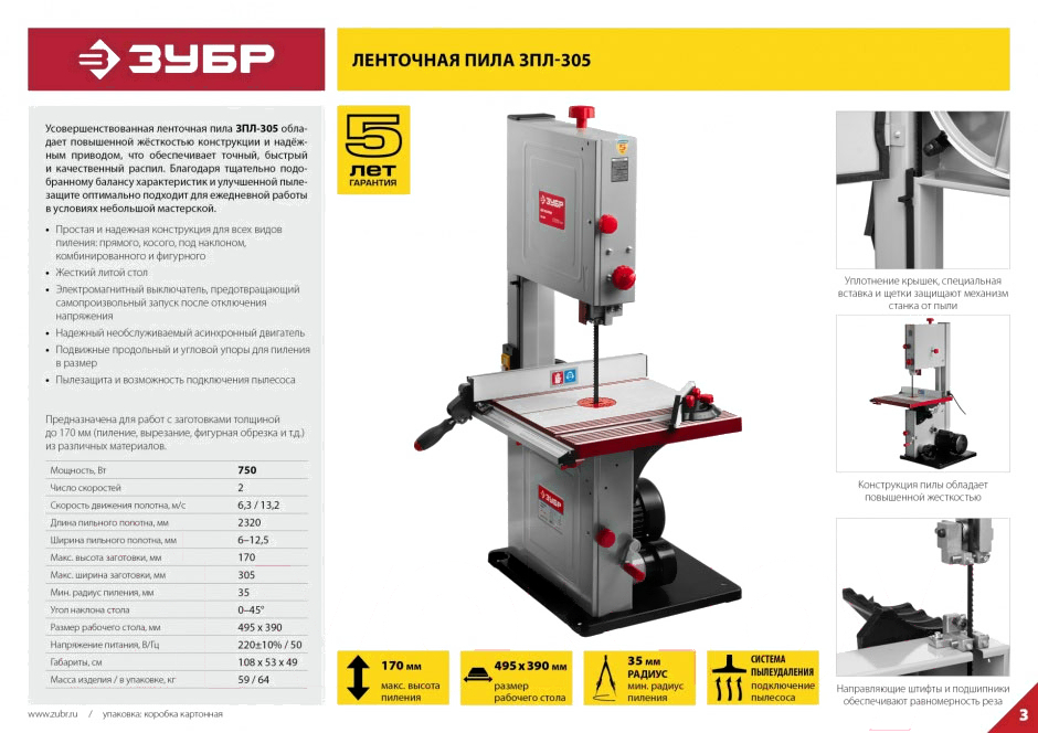 • Макс.ширина обрабатываемой заготовки 305 мм