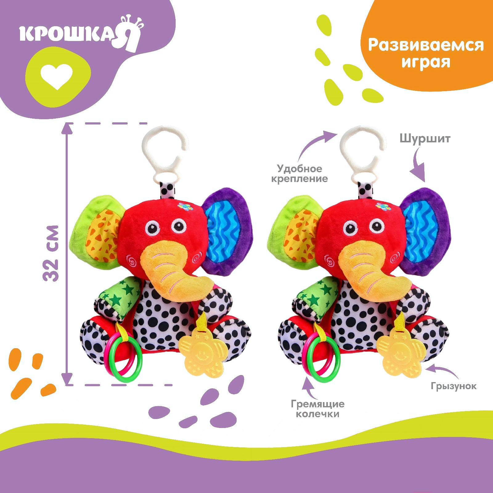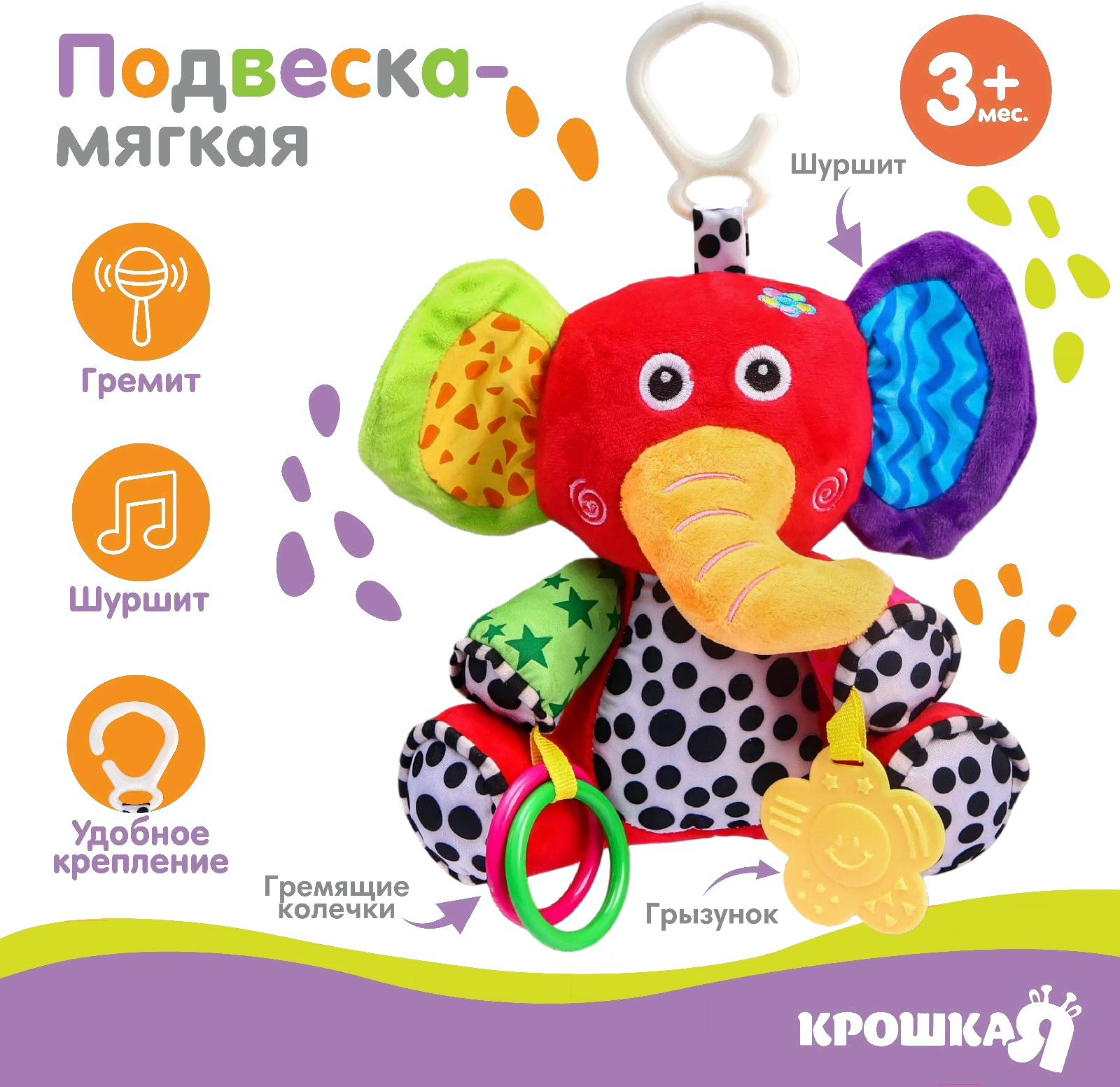 Подвеска на кроватку Крошка Я Слоник Бибо с прорезывателем / 2593663