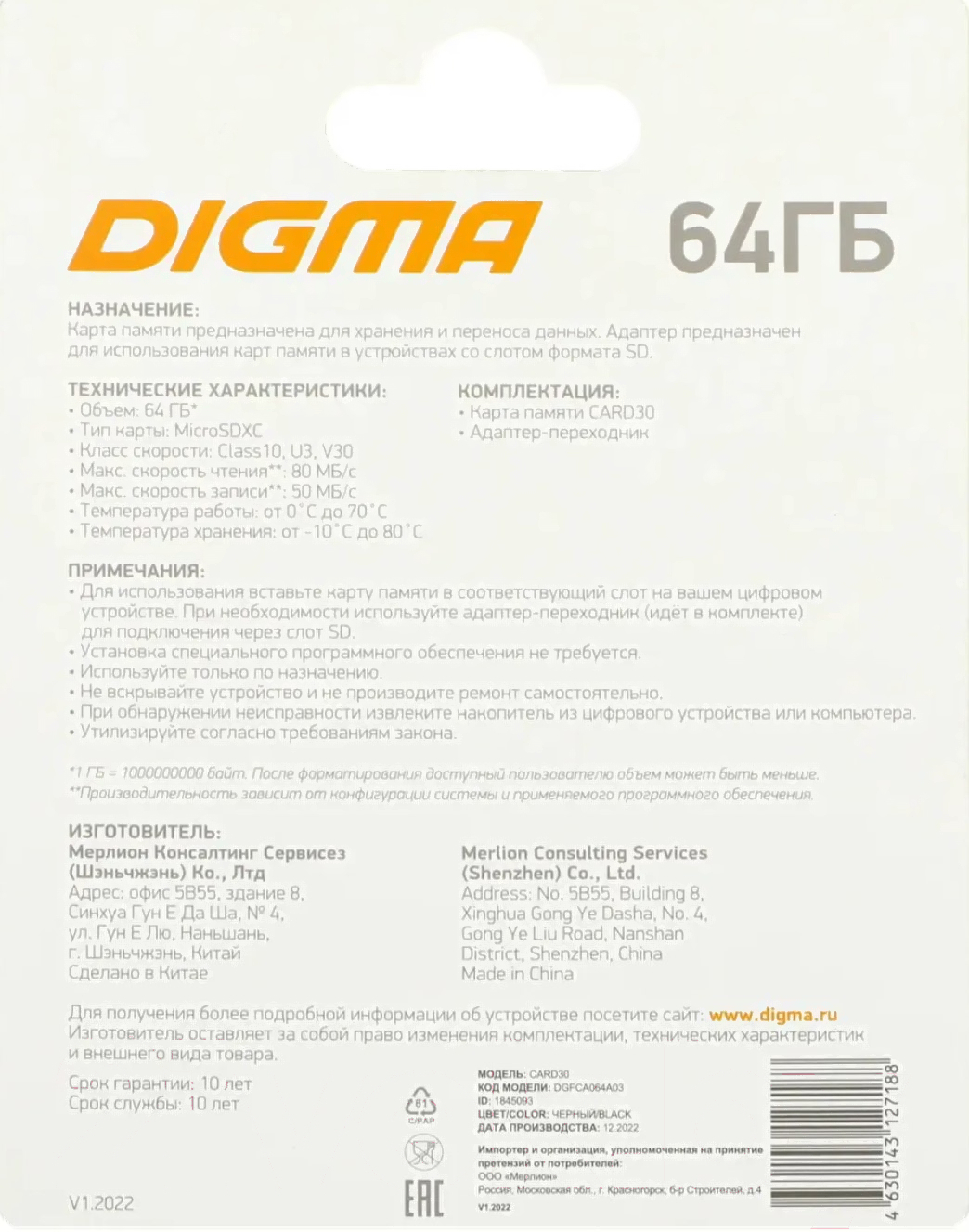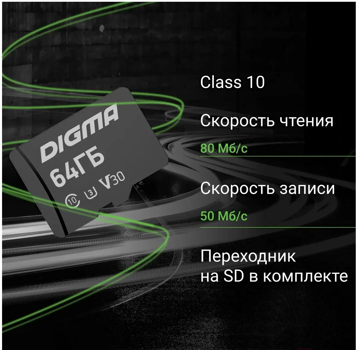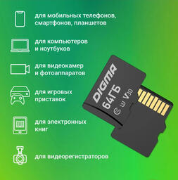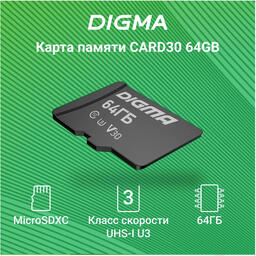 Карта памяти Digma MicroSDXC 64GB CARD30 V30 + adapter / DGFCA064A03