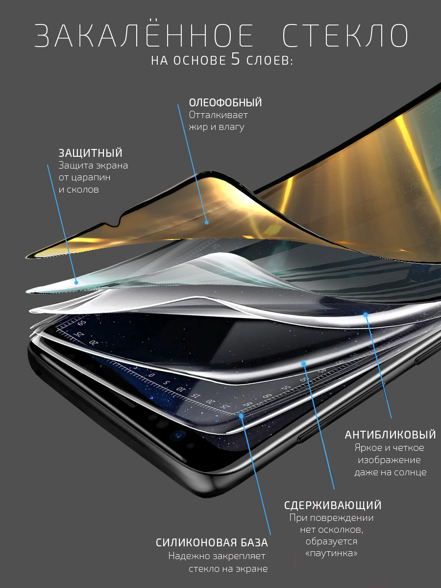 Защитное стекло для телефона Volare Rosso Needson Glow для Vivo Y22 (черный)