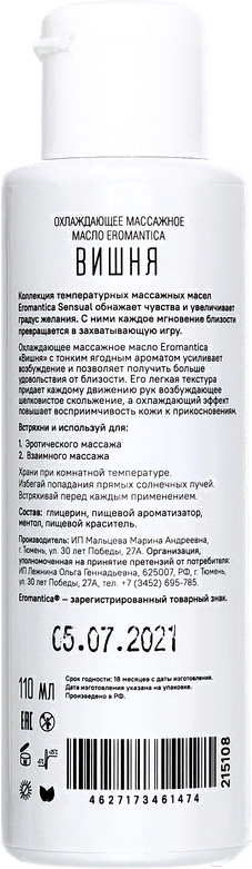 Эротическое массажное масло Eromantica Вишня / 215108 (110мл)