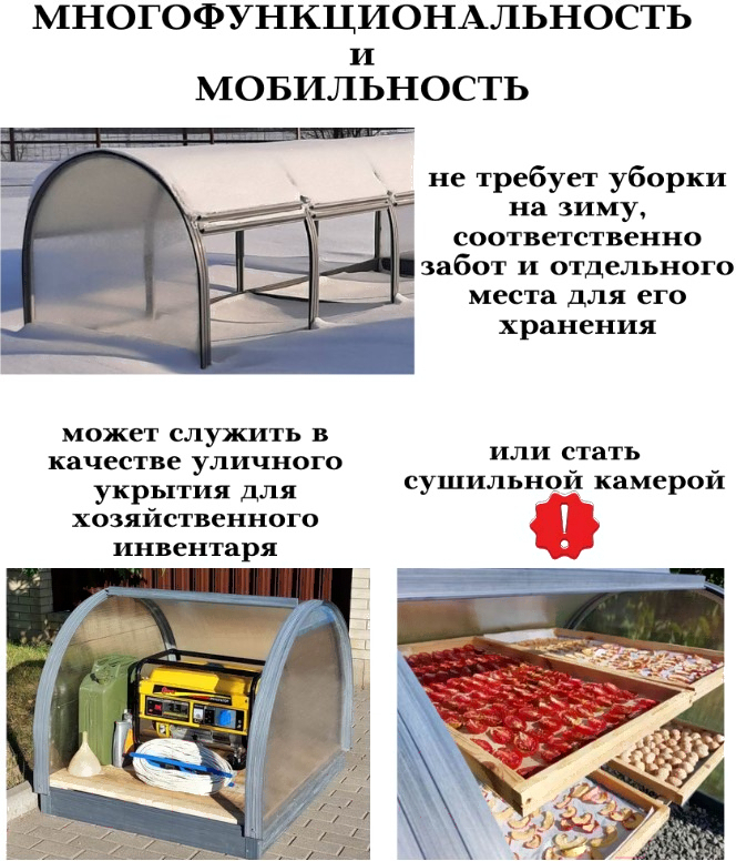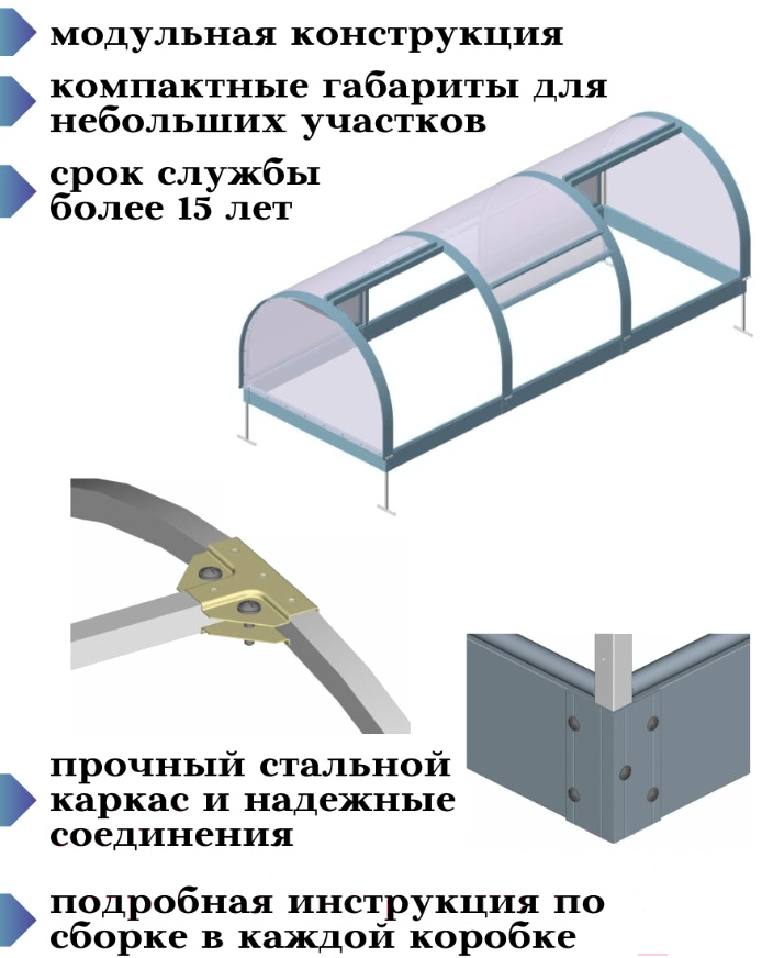 • Комплектация дуги, борт продольный, борт поперечный, соединитель, инструкция, крепеж (саморезы, болты, полный комплект необходимых деталей)