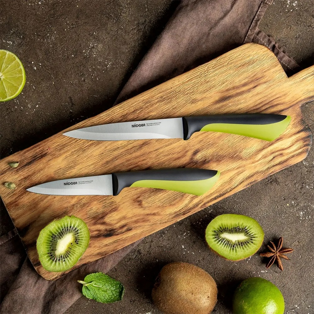 - Длина лезвия 12 см (универсальный), 9 см (для овощей)