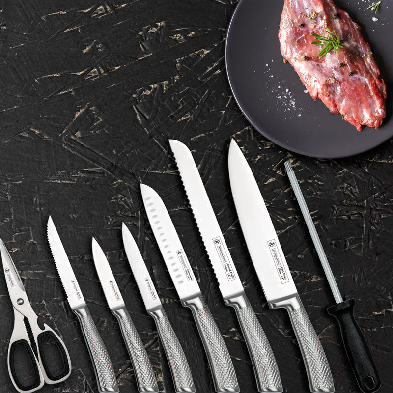 • Назначение ножа для стейка (6 шт.), для хлеба, для чистки овощей, поварской, сантоку, универсальный