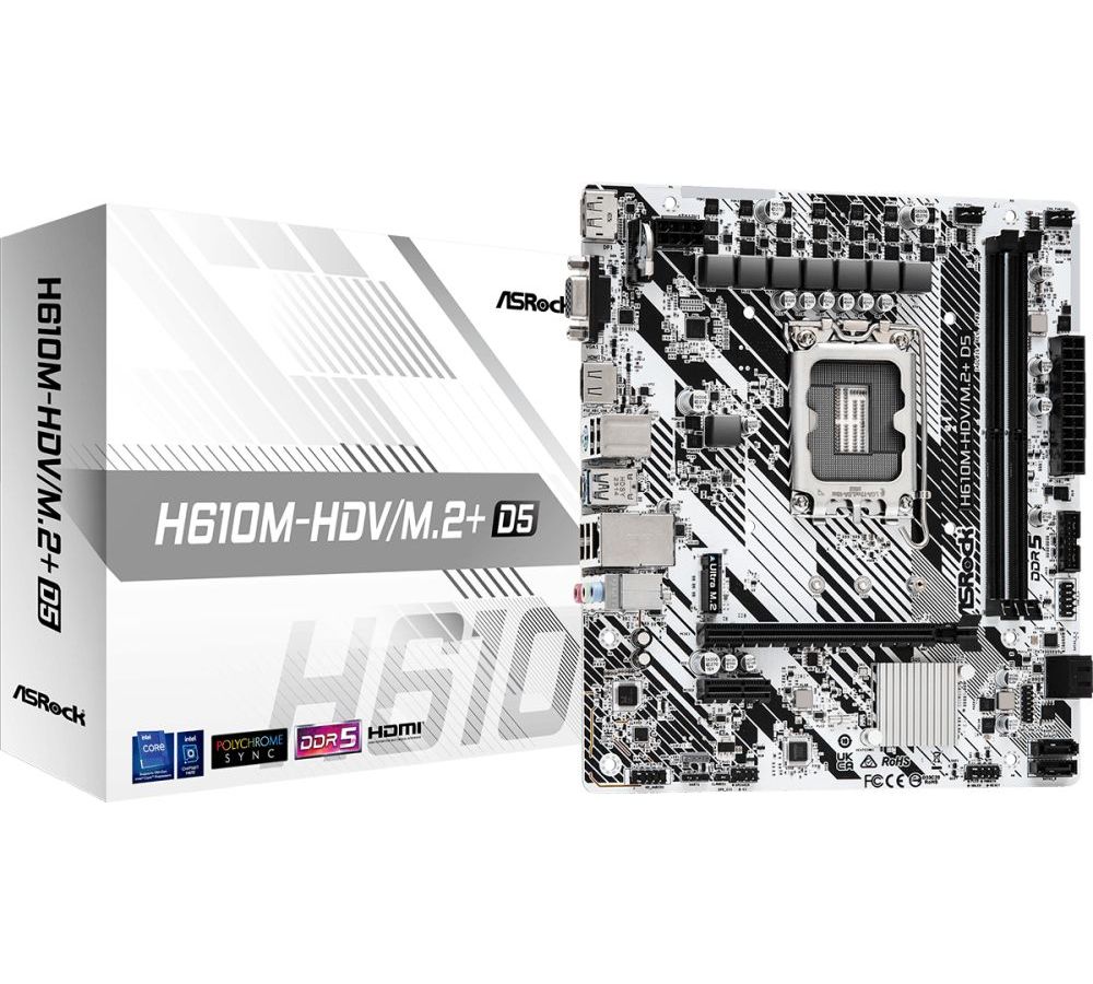 Описание товара Материнская плата Asrock H610M-HDV/M.2+ D5, Socket 1700, 2xDDR5-4800