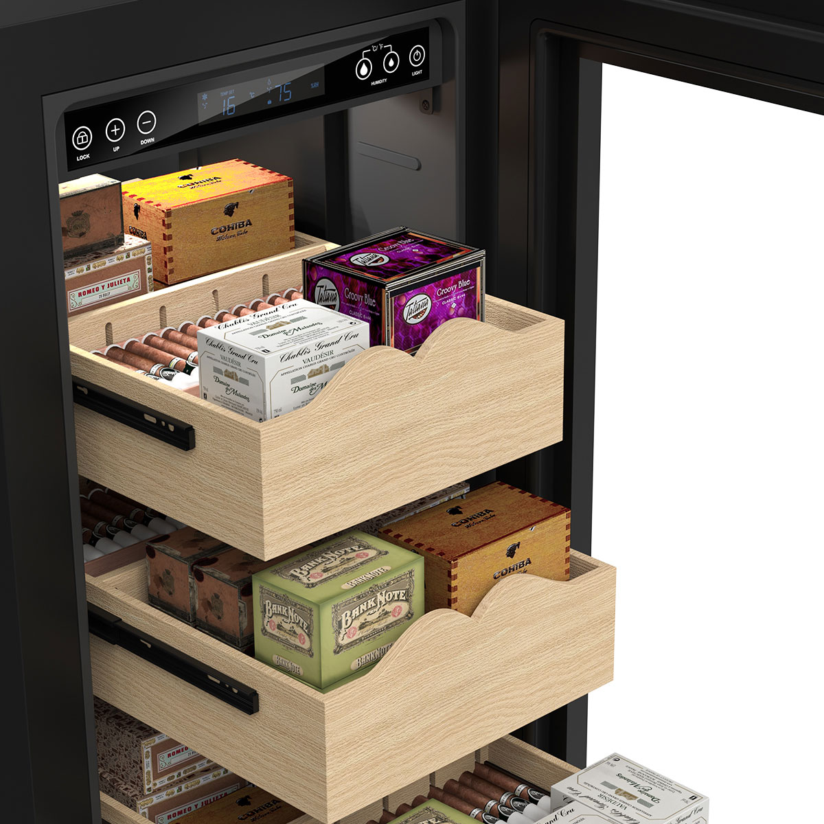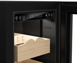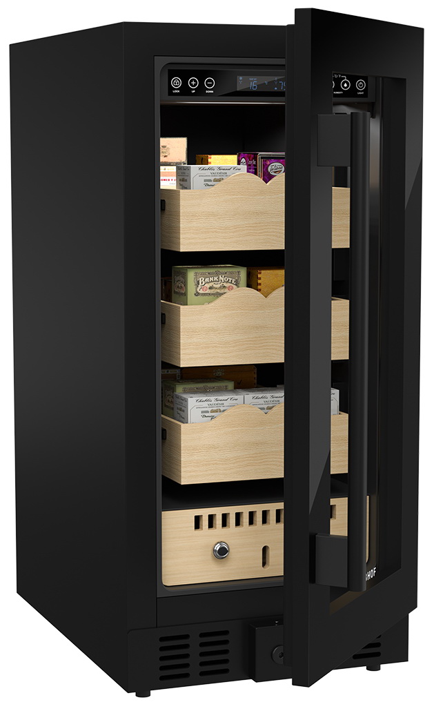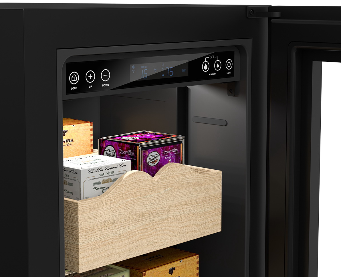 Благодаря системе активного контроля влажности внутри шкафа поддерживается оптимальная температура, при которой сигары сохраняют качество и вкус в течение длительного времени.