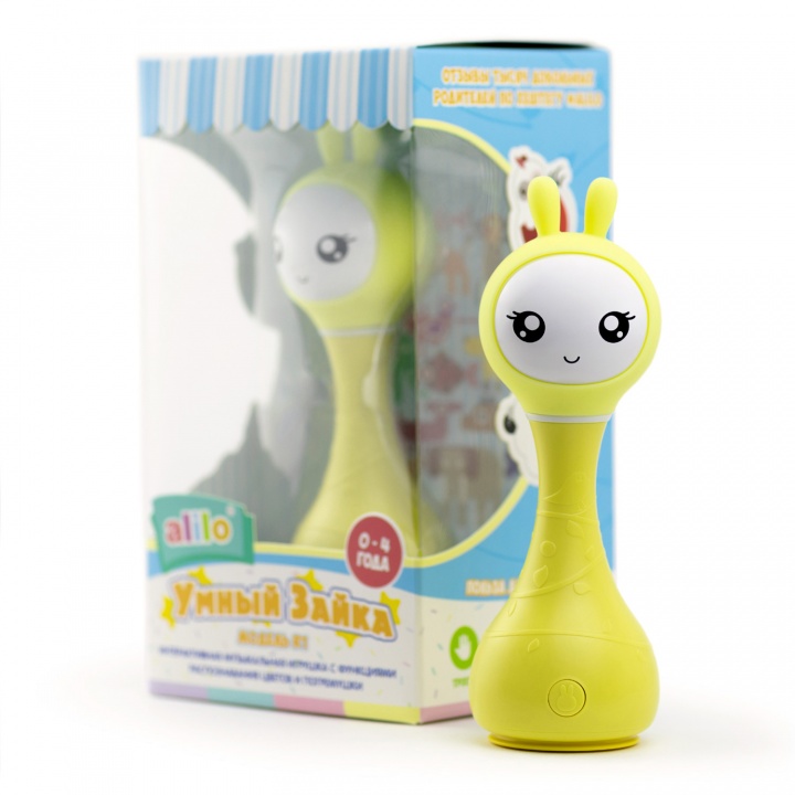 Игрушка в форме зайки обладает массой развлекательных и познавательных функций. Во-первых, это музыкальные эффекты и возможность игры в нескольких режимах: режим погремушки активирует различные звуки, режим сказок, стихов, а так же любимых песенок. Во-вторых, игрушка способна убаюкать малыша проигрыванием белого шума и успокаивающими мелодиями, после чего она отключится через 45 минут. Кроме того, в набор к игрушке входит 9 цветных карточек, с которыми малыш сможет быстро и легко учить цвета. Достаточно поднести карточку к специальному индикатору и игрушка определит, что за цвет изображен на карточке.