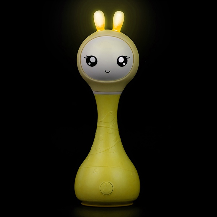Игрушка имеет эргономичную форму и чем-то напоминает погремушку, которую малышу будет удобно держать маленькой ручкой. Зайка выполнен из высококачественного АБС-пластика, а ушки (которые светятся и переливаются 7 цветами) изготовлены из высококачественного силикона, поэтому их можно даже грызть.