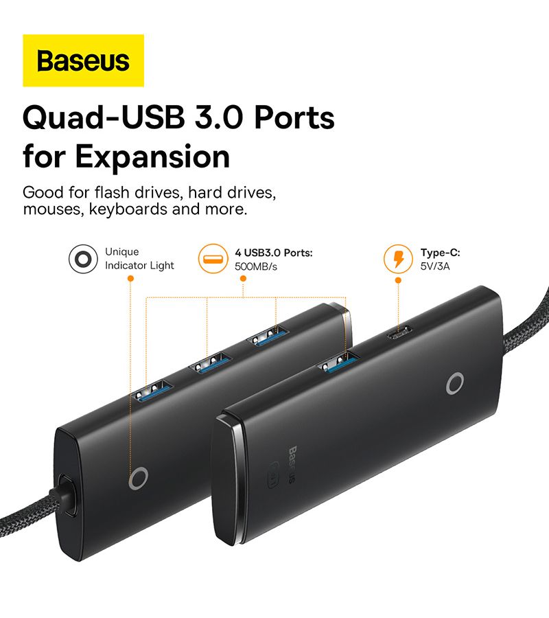 USB-хаб Baseus Lite Series Black (WKQX030001)
