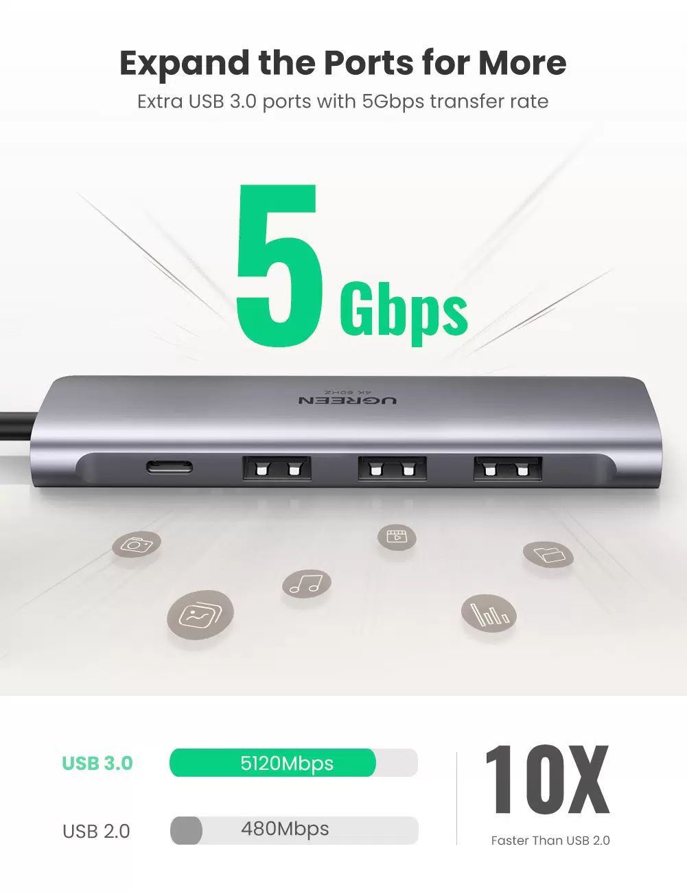 -25% В наличии 3 470 руб. 4 620 руб. USB-хаб UGREEN CM136-70495 Space Gray (70495)