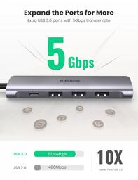 USB-хаб UGREEN CM136-70495 Space Gray (70495)