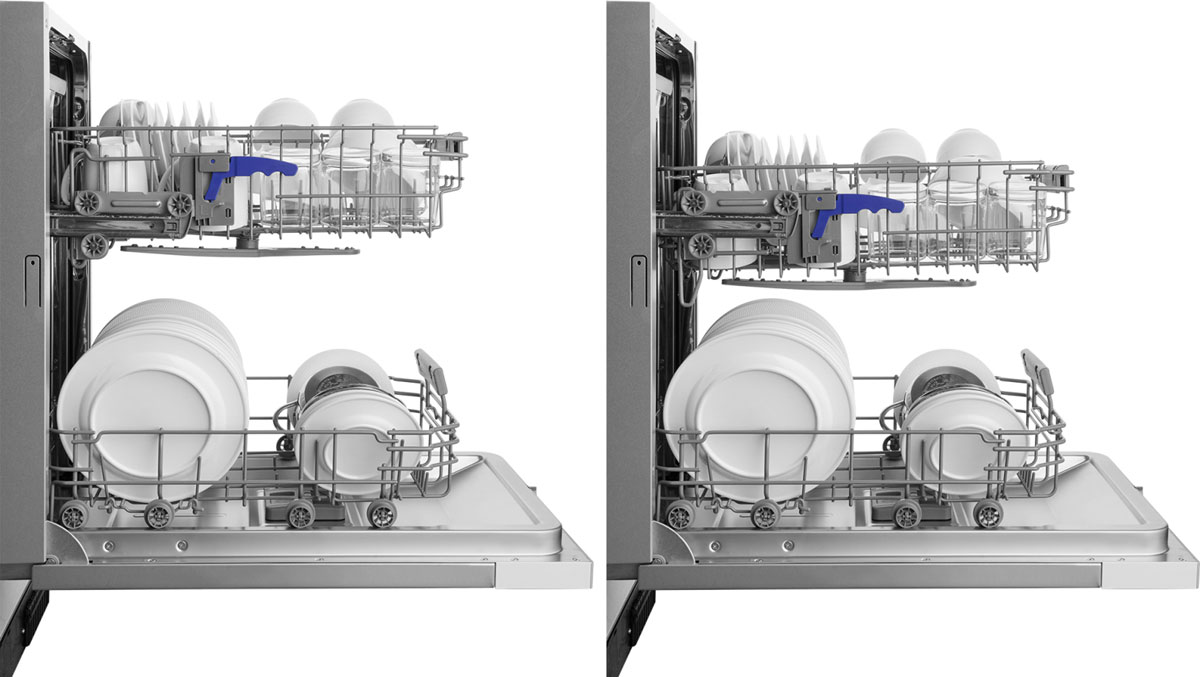 Вертикальная регулировка средней корзины по высоте, как в загруженном, так и в пустом состоянии, позволит вам буквально на лету изменять внутреннее пространство посудомоечной машины, размещая посуду наиболее эргономичным образом.