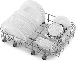 Складные стойки нижней корзины, позволят с удобством использовать её как для размещения дополнительных блюдец и тарелок, так и для более крупной посуды, такой как кастрюли и сковороды.