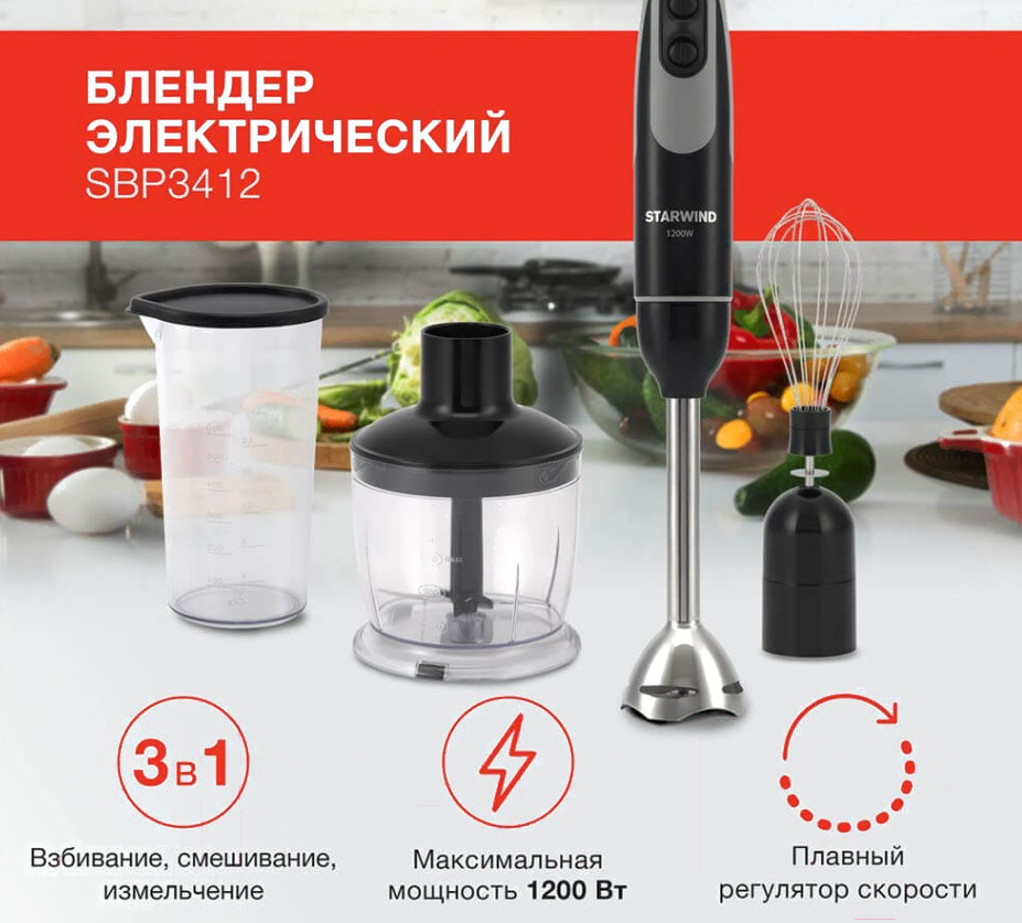 Блендер погружной StarWind SBP3412 (черный/серый)