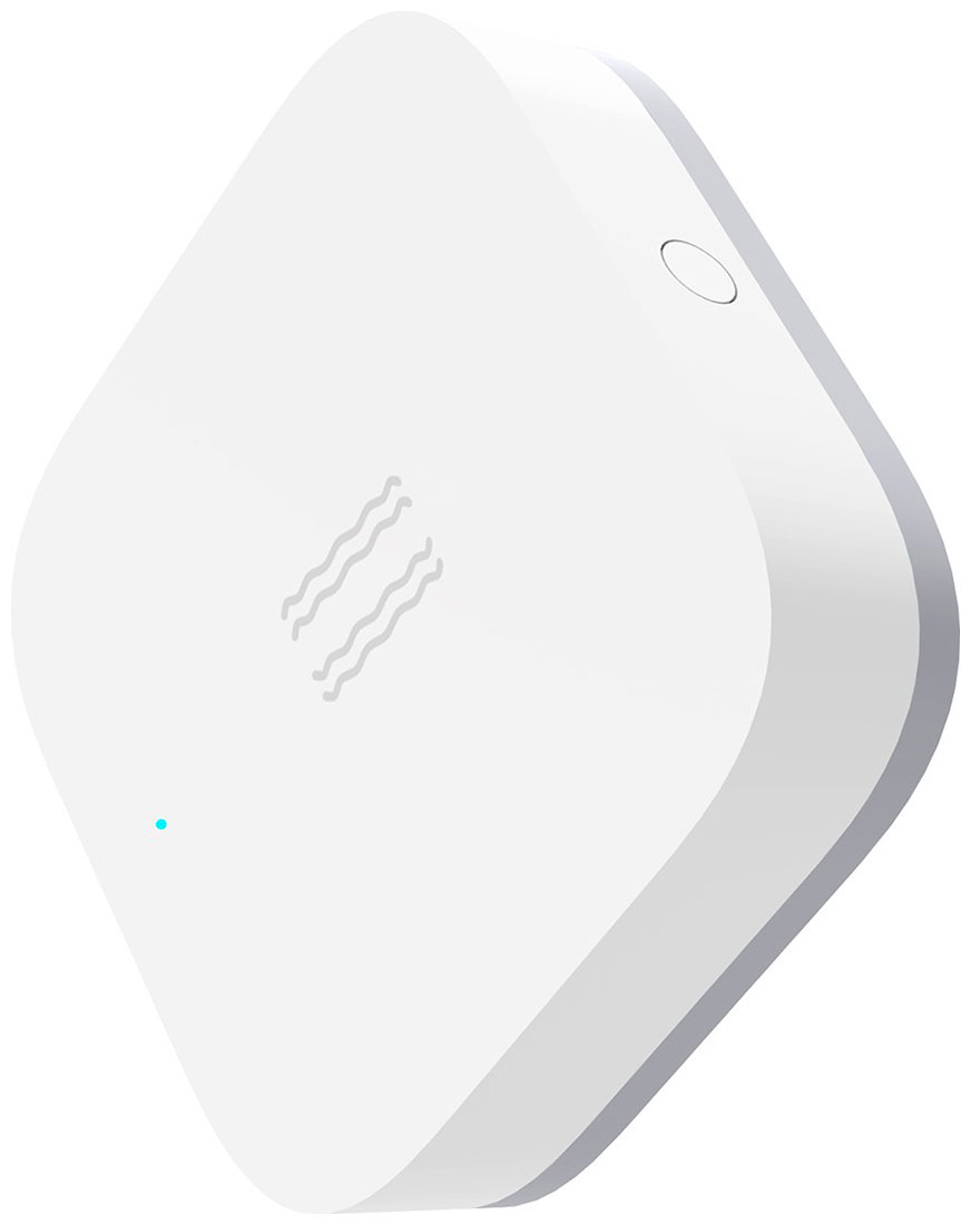 Фиксирует движение и состояние освещения. Можно установить на поворотное крепление при помощи стикера из комплекта или просто поставить на горизонтальную поверхность. Дальность обнаружения — 7 метров, угол обзора — 170°. На одной батарее работает до 2-х лет.