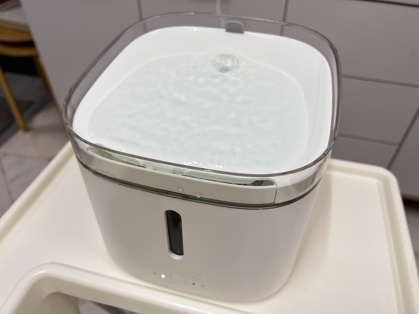 Высота фонтана тщательно протестирована и спроектирована, чтобы не пугать животное, но в то же время привлекать его водой. Отвод воды спроектирован таким образом, что она течет медленно и тихо. Подвешенный насос уменьшает резонанс. Уровень шума при работе устройства не превышает 30 дБ. Благодаря трехступенчатой системе заглушения шума обеспечивается тихая обстановка.