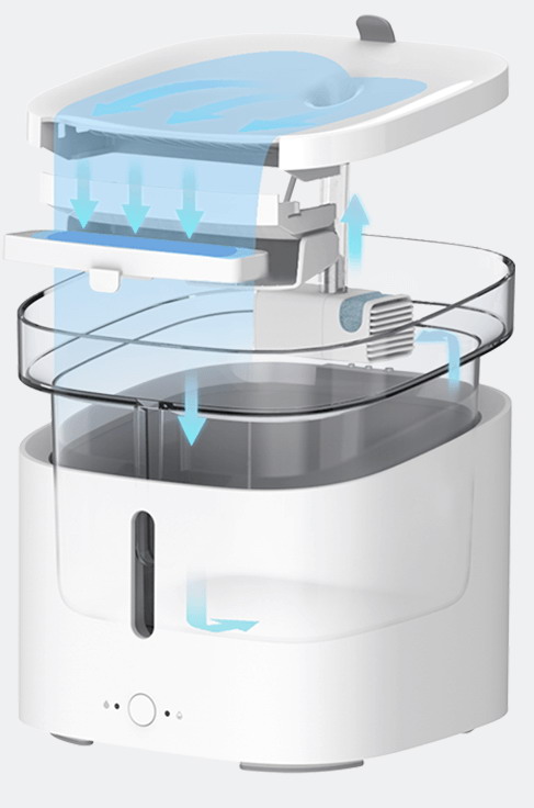Устройство оснащено интуитивными и понятными индикаторами,а благодаря прозрачному окошку можно в реальном времени контролировать уровень воды. Если воды недостаточно, приложение Mi Home/Xiaomi Home и красный световой индикатор фонтана напомнят вам о том, что ее необходимо долить.