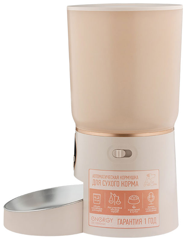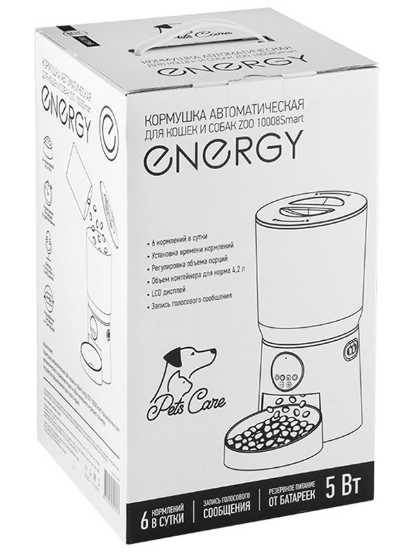 Кормушка автоматическая для кошек и собак Energy ZOO 10008Smart 106061- установка времени кормлений, 6 кормлений в сутки, LСD дисплей, регулировка количества порций за одно кормление, запись голосового сообщения, стильный дизайн.