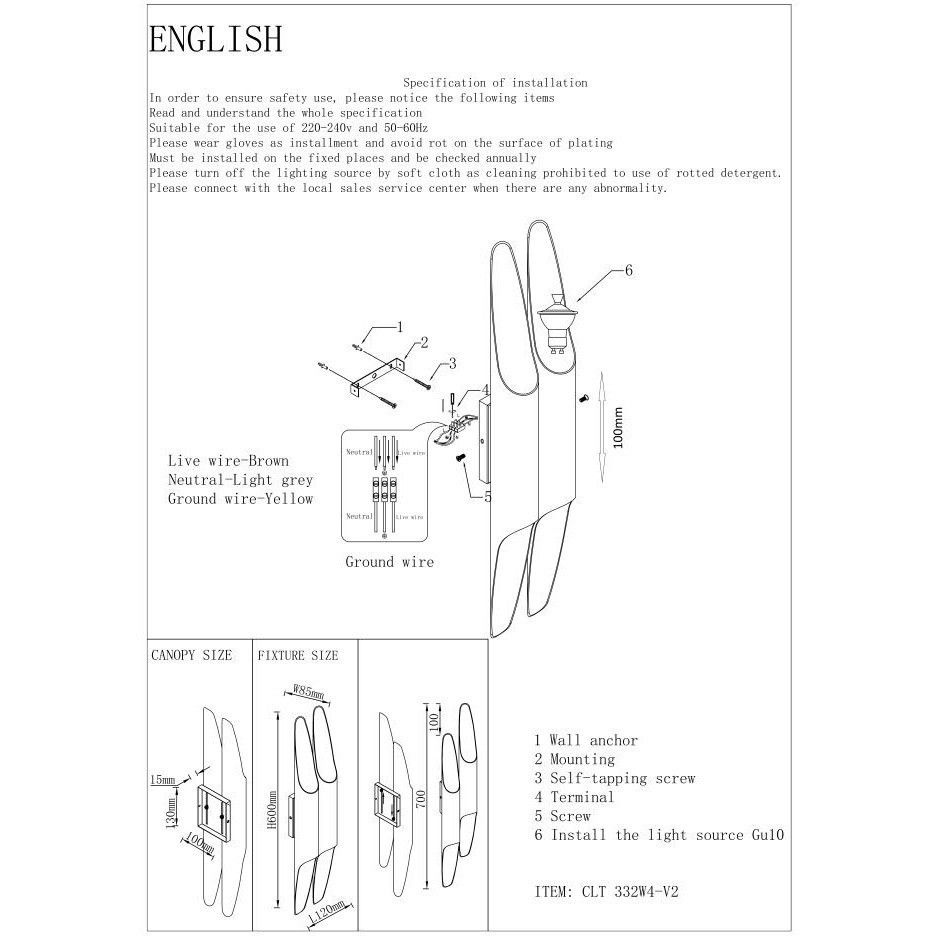 Crystal Lux Настенный светильник, GU10, 50 Вт