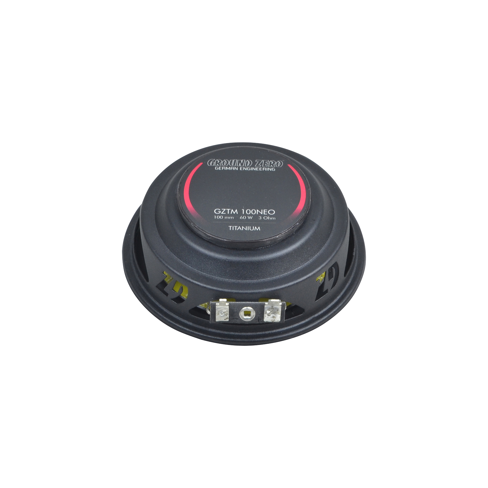 Дифузор Динаміка Ground Zero GZTM 100NEO виконаний з композиту HQPP на гумовому підвісі, а магнітна система представлена потужним неодимовим магнітом, які в сукупності гарантують високу якість відтворення музики. Кошик Динаміка металева з хорошою стійкістю до виникнення резонансу навіть на максимальній гучності.