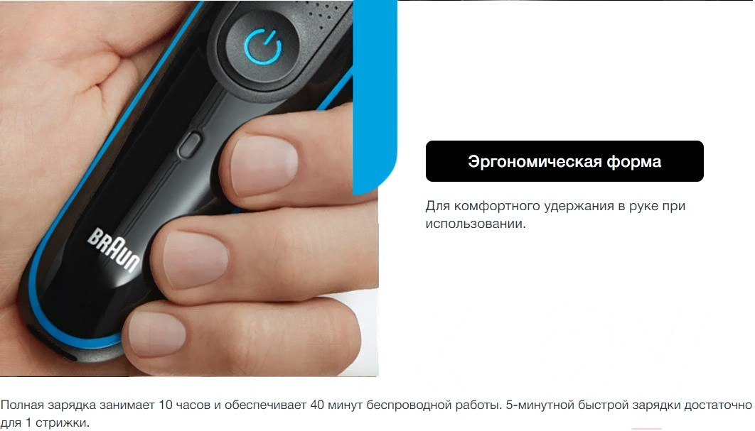 • В комплекте щетка для чистки, зарядное устройство, насадки пластмассовые (5 шт.), машинка для стрижки
