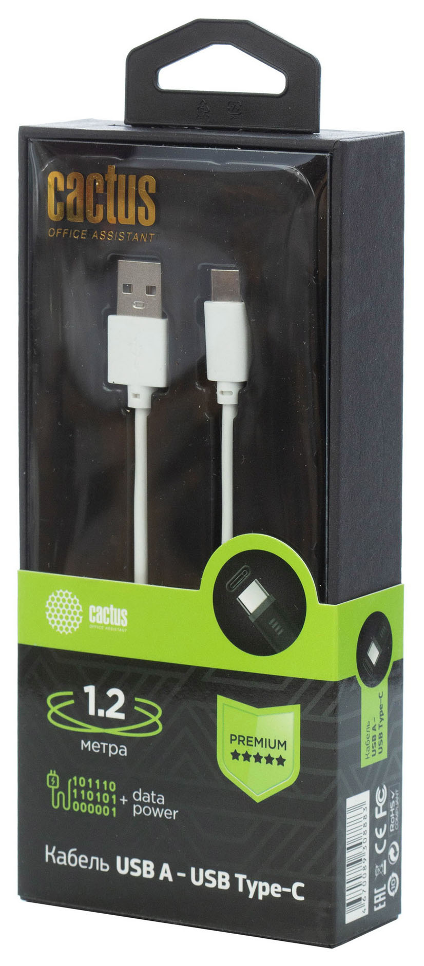 Описание товара Кабель Cactus CS-USB.A.USB.C-1.2 USB (m)-USB Type-C (m) 1.2м белый блистер