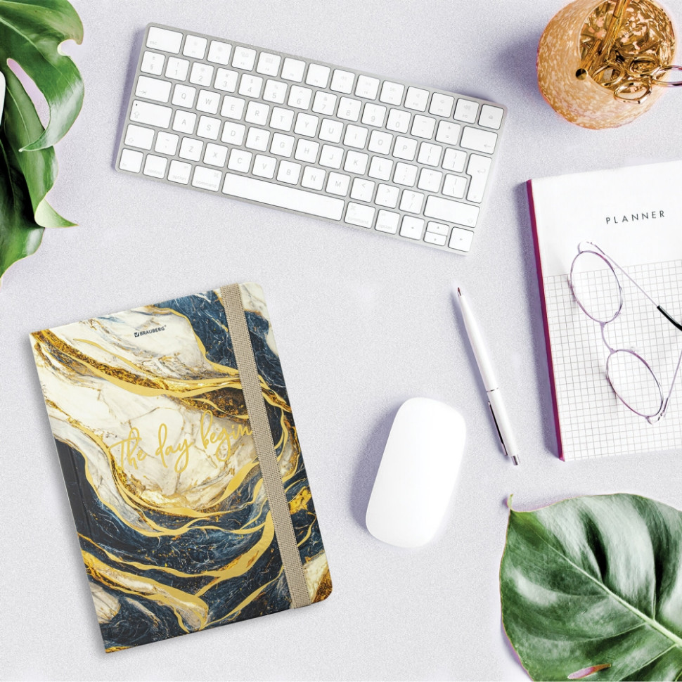 Блокнот с резинкой в клетку 96 л., А5 145х203 мм, твердая обложка с фольгой, BRAUBERG, "Marble", 115536