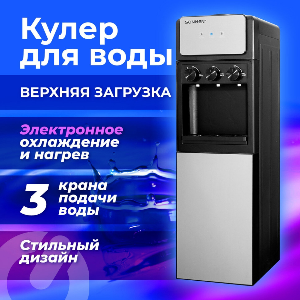 Кулер для воды SONNEN FSE-03Ri, напольный, НАГРЕВ/ОХЛАЖДЕНИЕ ЭЛЕКТРОННОЕ, 3 крана, шкаф, 455743