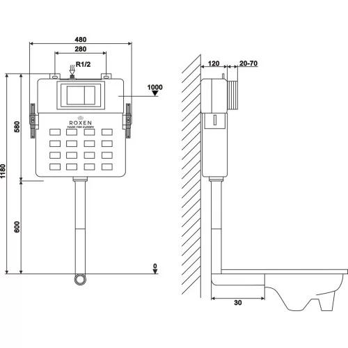 Комплект инсталляции для приставного унитаза 3 в 1 Roxen Attach 945173 - состоит из инсталляции для приставного унитаза Roxen Attach 710215 и кнопки для инсталляции Roxen Glass 430280B.