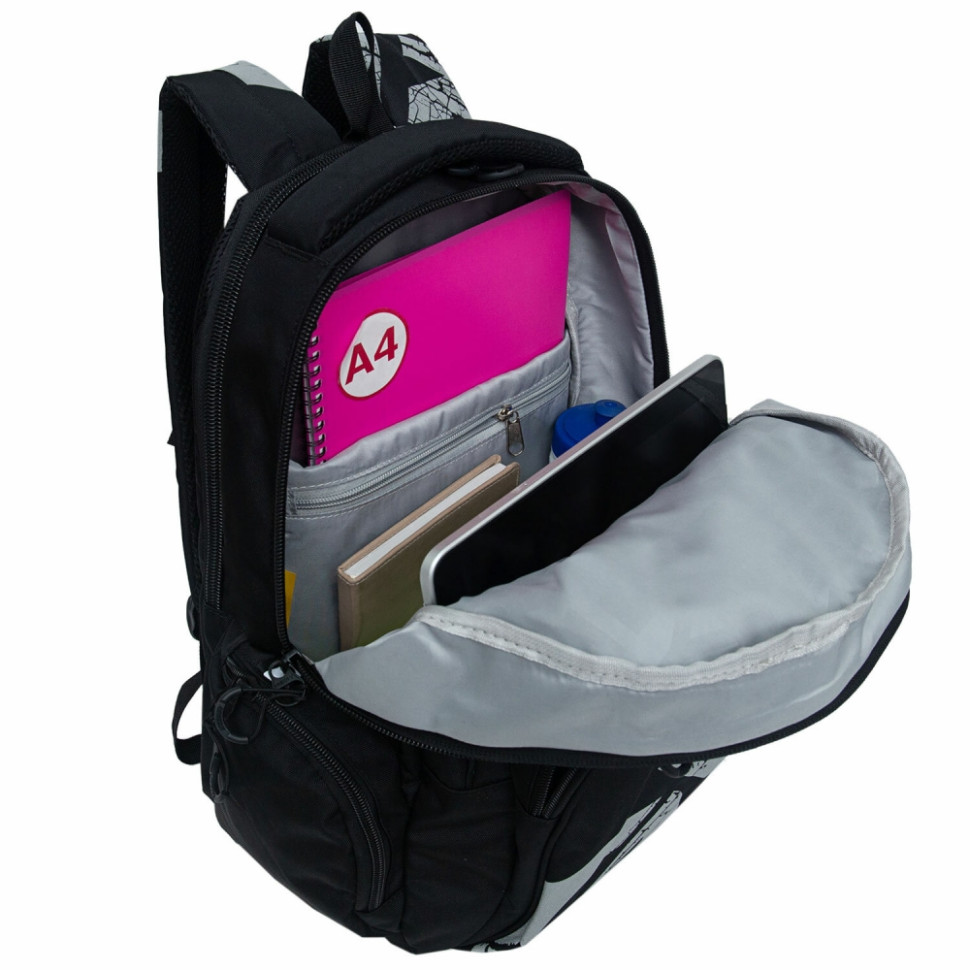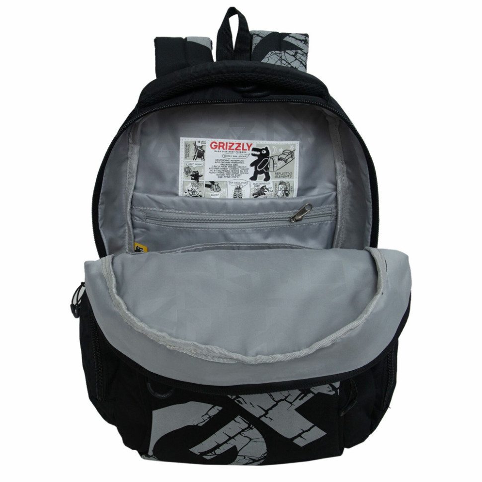 Рюкзак GRIZZLY школьный, анатомическая спинка, 2 отделения, для мальчиков, BLACK/GRAY, 42х32х22 см, RU-433-1/2 (272863)
