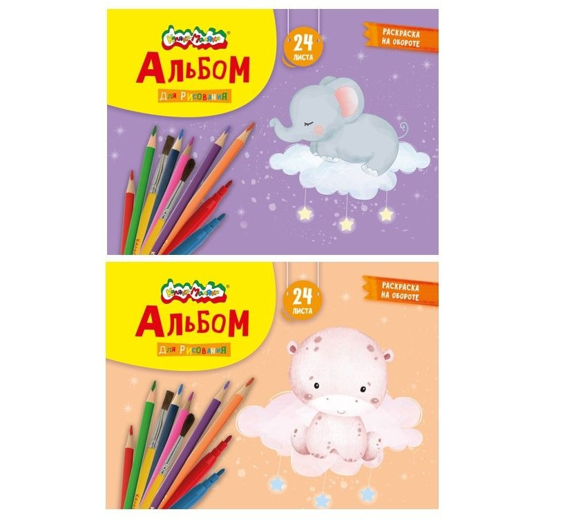 Альбом д/рис. 24 л. А4 скреп. Каляка-Маляка целлюлозн. карт., ВД-лак, офс. раскраска на обороте АКМ24-Д (250581)