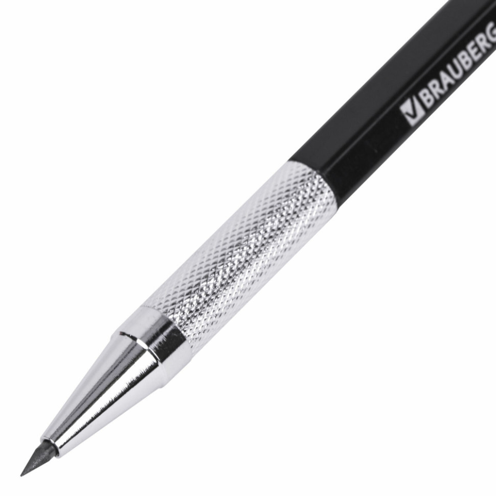 Набор из 12 шт, Карандаш механический цанговый 2 мм, HB, BRAUBERG "METALLIC X-20", металлические детали, 181976
