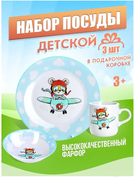 • В наборе кружка (1 шт.), суповая тарелка (1 шт.), тарелка закусочная (десертная) (1 шт.)