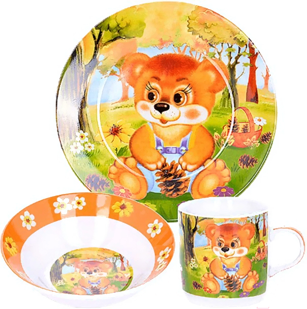 - В наборе кружка (1 шт.), суповая тарелка (1 шт.), тарелка закусочная (десертная) (1 шт.)