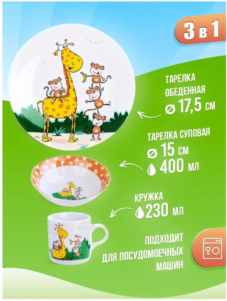 • В наборе кружка (1 шт.), суповая тарелка (1 шт.), тарелка закусочная (десертная) (1 шт.)