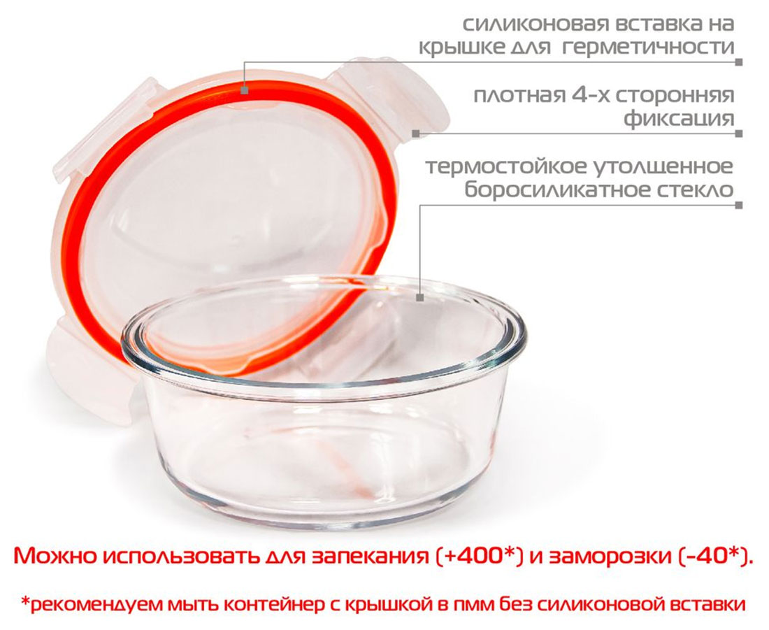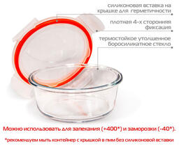 Модель обладает круглой формой и представлена размером 150x60 мм. Для изготовления контейнера Auffman AM-3002 используется боросиликатное стекло, выдерживающее обширный диапазон температур от -40 до +400 градусов. Такой контейнер подойдет для разогрева еды в микроволновой печи и для заморозки продуктов в морозильной камере.