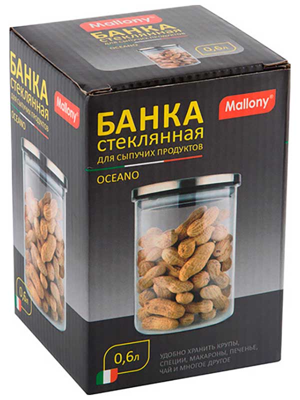 Стеклянная банка для сыпучих продуктов Mallony OCEANO с крышкой из нержавеющей стали объем 0.6 л 004461 предназначена для хранения сыпучих продуктов.
