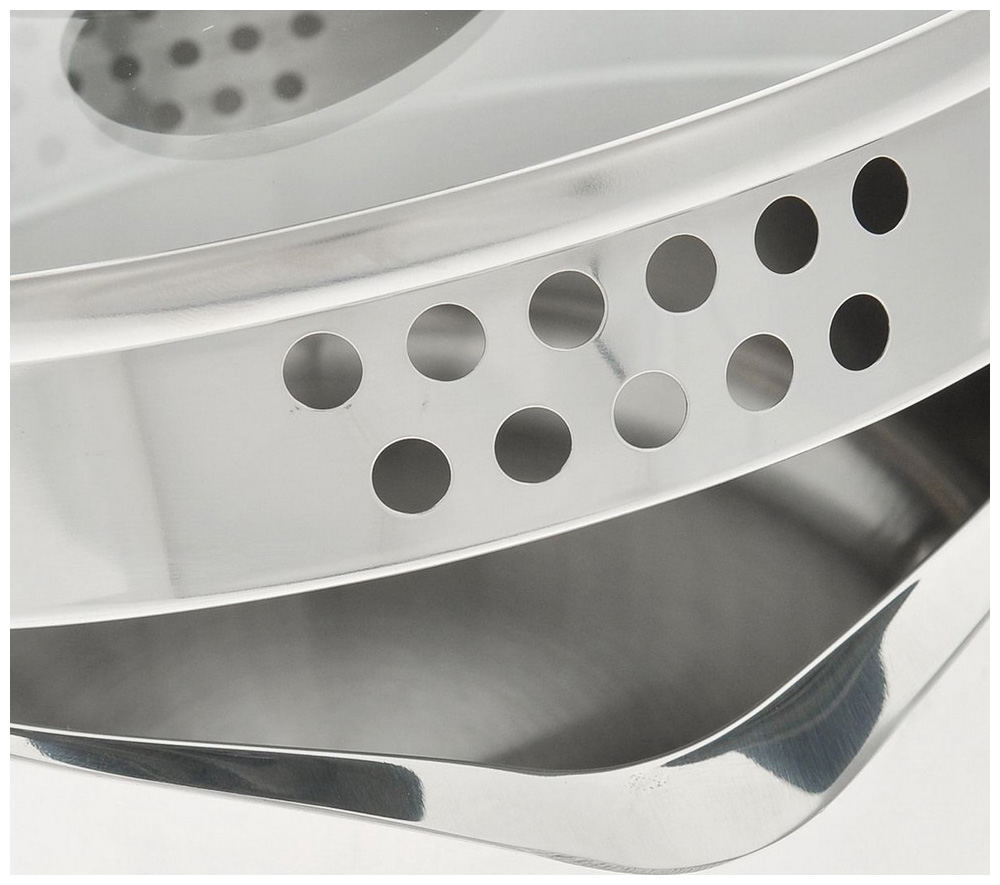 Крышка выполнена из стекла и нержавеющей стали с отверстием для отвода пара