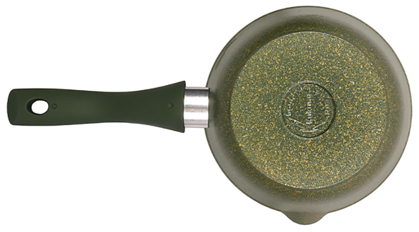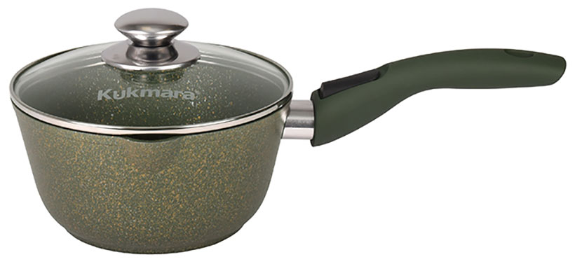 Ковш Kukmara с антипригарным покрытием имеет ровное, проточенное дно, которое обеспечивает максимальное прилегание дна посуды к плите для более быстрого и равномерного нагрева.