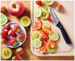 Ножи серии Tefal Essential K2219355 из нержавеющей стали подарят вам удовольствие и максимальный комфорт при каждом использовании. В комплект входит универсальный поварской нож 15 см и нож для чистки овощей и фруктов 9 см. Ручки ножей для кухни обеспечивают полный контроль и комфортное использование, а лезвия из высококачественной нержавеющей стали заточены идеально остро и гарантируют исключительное качество нарезки. Ножи Tefal Essential обладают повышенной защитой рук от случайных порезов во время использования - готовьте безопасно и с удовольствием. Практичный чехол для лезвий гарантирует их безопасное и надежное хранение. Готовьте с серией Tefal Essential : нож для хлеба 20 см, поварской нож 20 см, нож универсальный 20 см, нож универсальный 15 см, нож сантоку 12 см, нож универсальный 12 см, нож для овощей 9 см. Нож из серии Tefal Essential - идеальное базовое решение для вашей кухни!