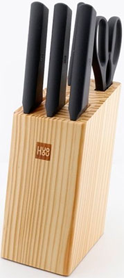 Набор стальных ножей (4 ножа ножницы деревянная подставка из сосны) Huo Hou 6-Piece Kitchen Knife Set Lite (HU0058), черный