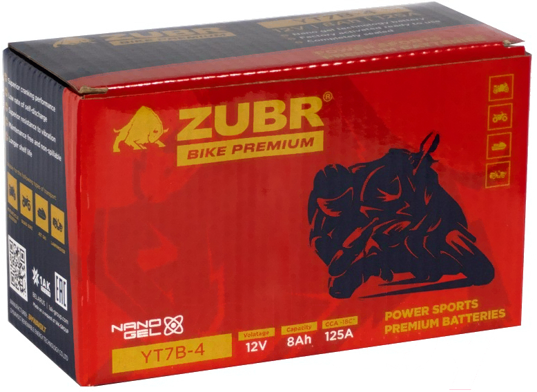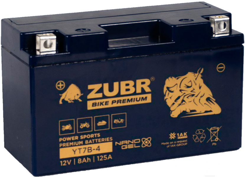 Мотоаккумулятор Zubr Bike Premium L+ / YT7B-4 (8 А/ч)