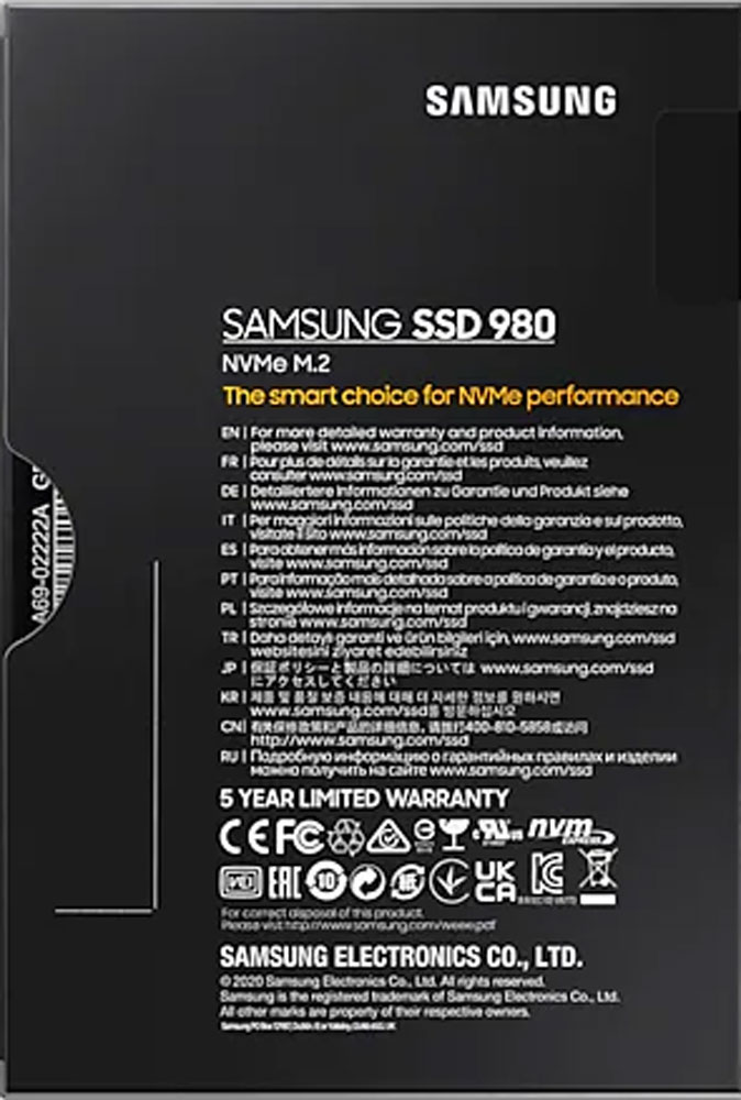 Встроенный фирменный алгоритм термоконтроля позволяет управлять температурой SSD 980, что повышает долговечность и стабильность производительности этого SSD накопителя. Для минимизации флуктуаций производительности SSD 980 используется технология Samsung Dynamic Thermal Guard, поддерживающая оптимальный уровень температуры модуля.